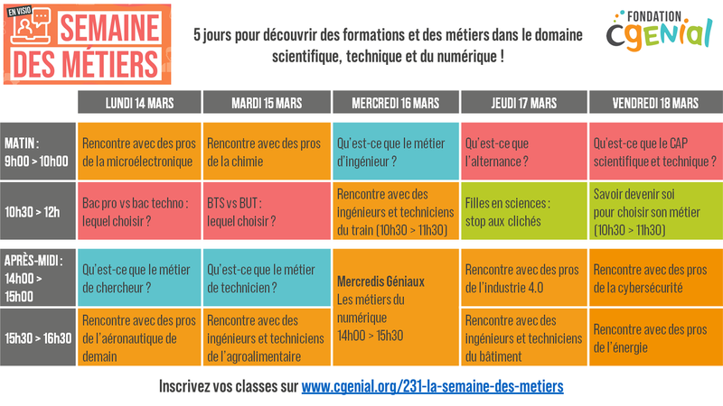 Que vous soyez lycéen, bachelier ou étudiant, les salons vous permettront de réussir votre orientation en vous informant sur les parcours possibles. les salons sont des occasions uniques de pouvoir échanger avec les enseignants et les étudiants, directement sur leur stand ! Vous obtiendrez toutes les infos sur les formations, les conditions d'admissions, les programmes, les débouchés, les stages ou la vie étudiante!